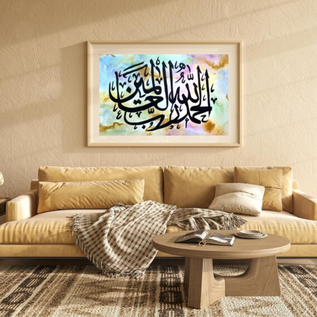 This print beautifully displays this powerful verse from Surah Fatihah through the intricate details of the Arabic script against a mesmerising background. This print is sure to brighten up any home.