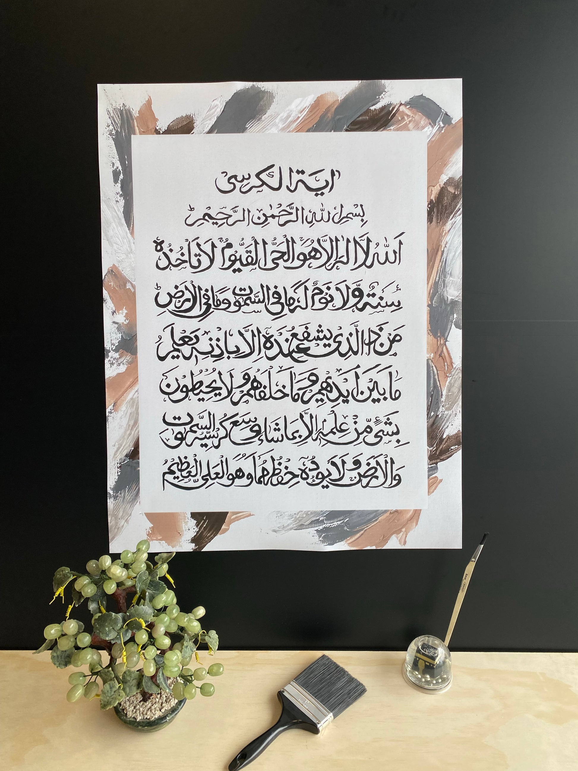 Prophet Muhammad (PBUH) said. "If one recites Ayatul Kursi before going to sleep, Allah will send an Angel to come and look after you and protect you." This modern design print captures the beauty and strength of the Ayatul Kursi verse from Surah Al-Baqarah, making it the perfect painting print for the entrance of any home.