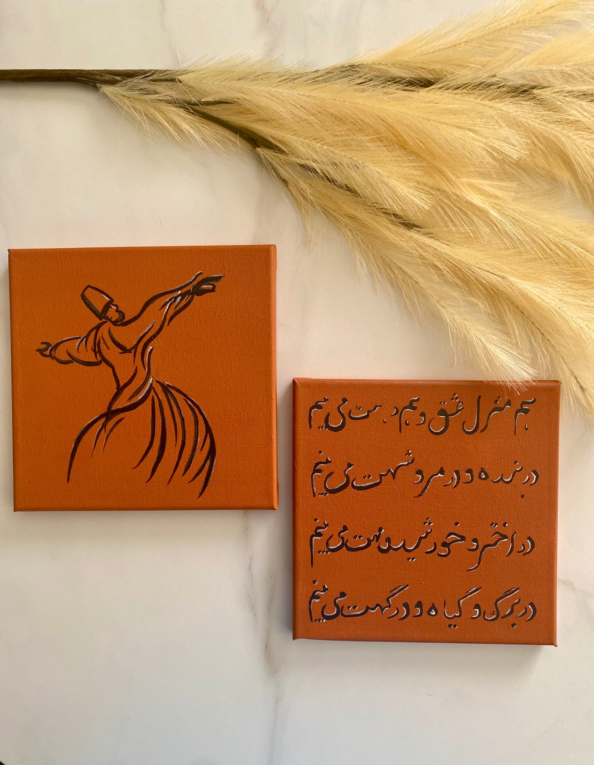 acrylic and metallic paint on 20 x 20 cm canvases. Set of two canvases.