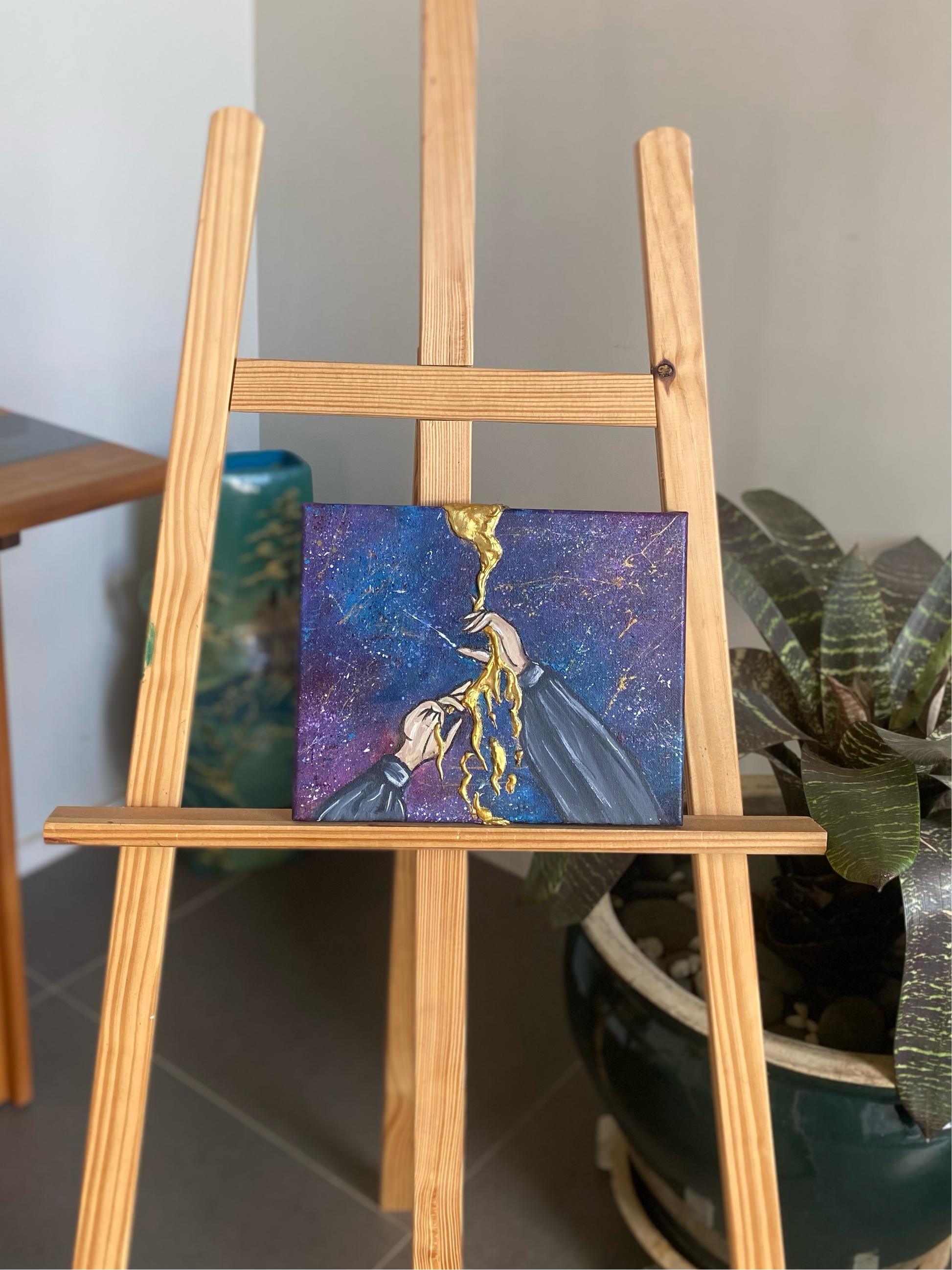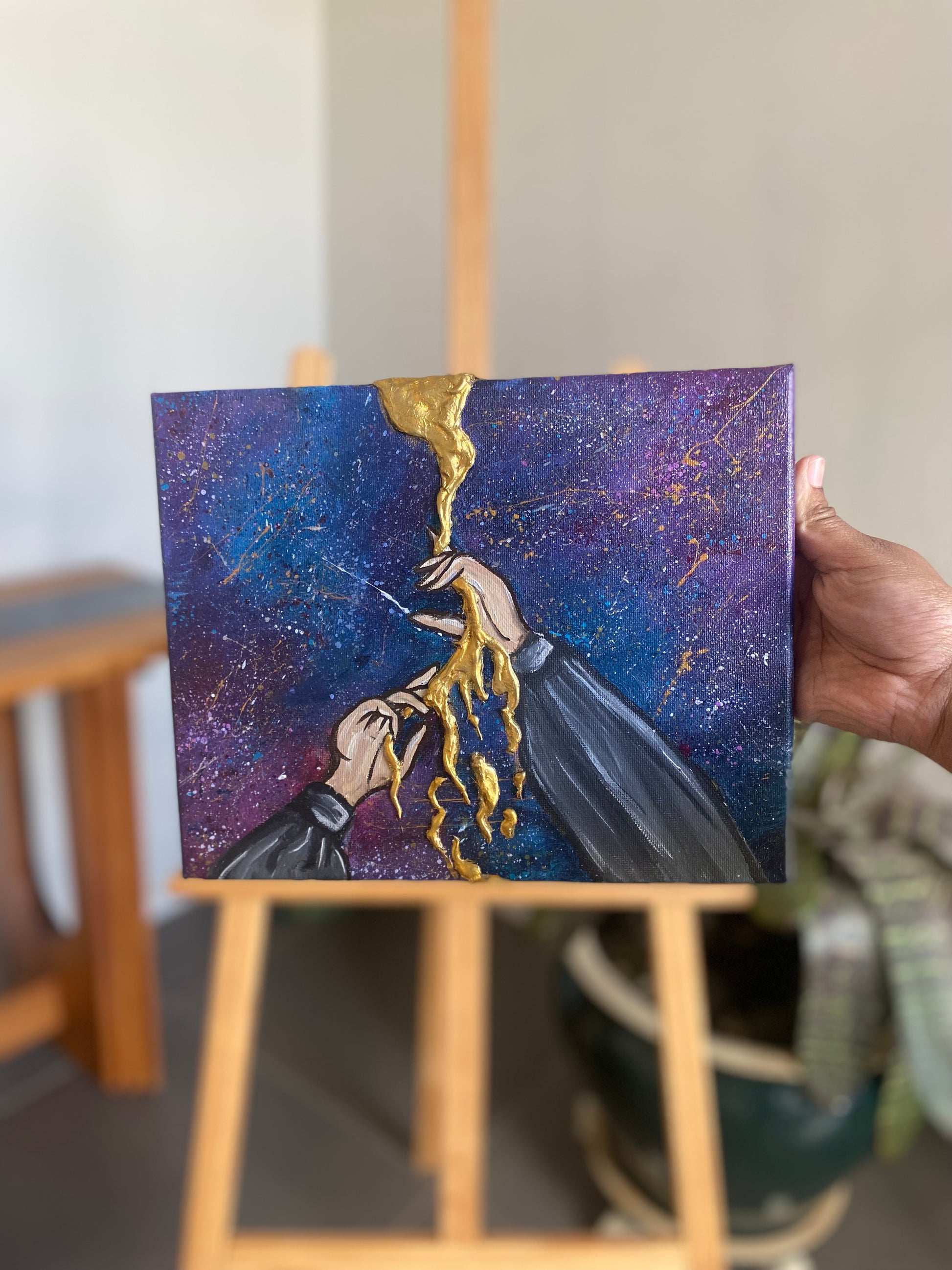 This painting emerged from a moment of quiet longing—an expression of what it feels like to reach out in prayer and find divine warmth pouring back into your life.